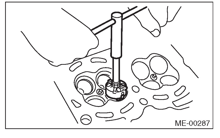 (7) Ream the inside of valve guide using ST. Put the ST in valve guide, and rotate the ST slowly clockwise while pushing it lightly. Bring the ST back while rotating it clockwise.