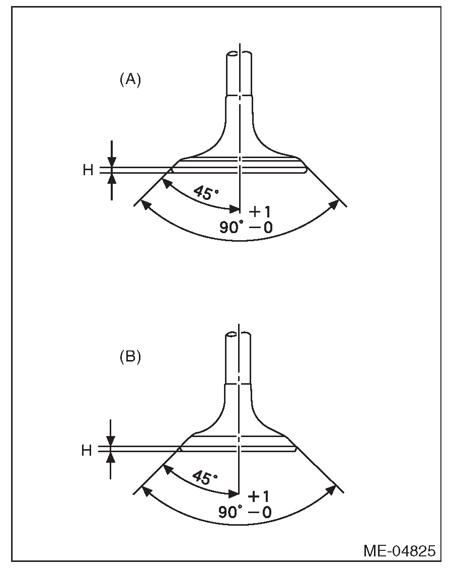1) Inspect the flange of valve and valve stem, and replace the valve with a new part if damaged, worn, deformed, or if dimension "H" in the figure is outside of the specified limit.