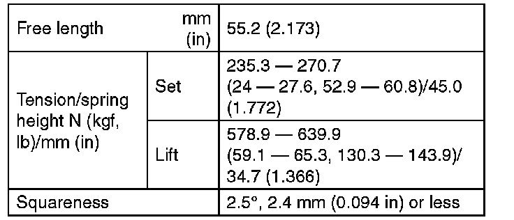 1) Check the valve springs for damage, free length, and tension. Replace the valve spring if it is not within the standard value presented in the table.