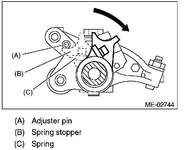 (1) Use the ST to rotate the spring stopper in the direction of the arrow to remove it from adjuster pin.