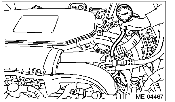 2) Disconnect the brake booster vacuum hose from the intake manifold, and attach the vacuum gauge.