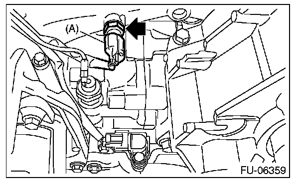 4. Disconnect the connector (A) from the engine coolant temperature sensor, and remove the engine coolant temperature sensor.