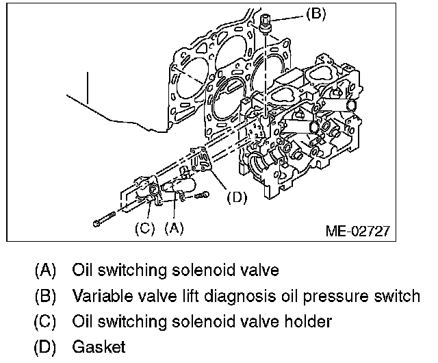 12) Remove the oil switching solenoid valve holder from the cylinder head.