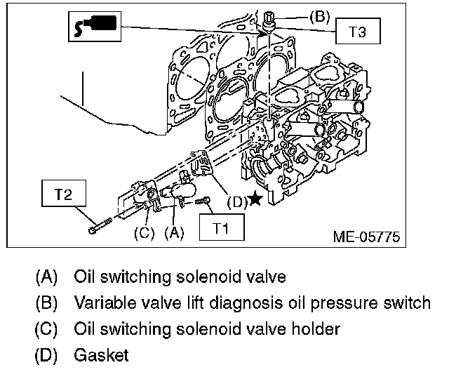 ^ Apply liquid gasket to variable valve lift diagnosis oil pressure switch threads.