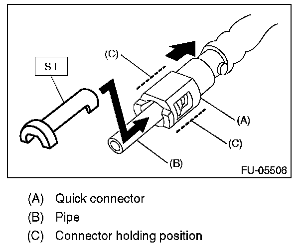 1. Attach ST to the pipe and push ST in the direction of arrow mark to disconnect the quick connector.