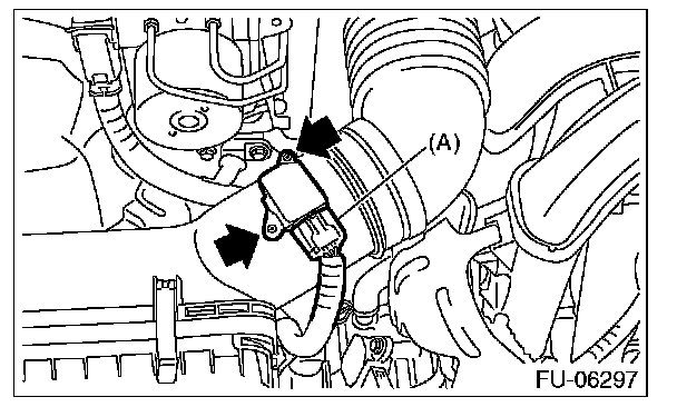 2. Disconnect the connector (A) from the mass air flow and intake air temperature sensor, and remove the mass air flow and intake air temperature sensor.