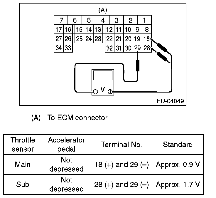 4. Measure the voltage between ECM connector terminals.