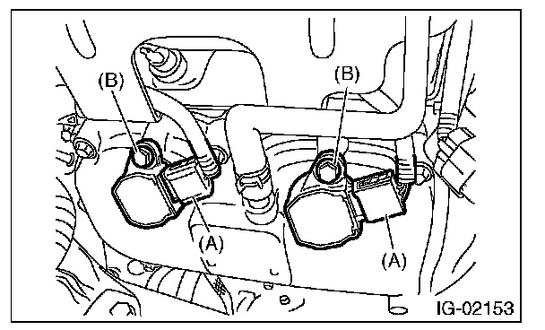 4. Remove the bolt (B), and remove the ignition coil.