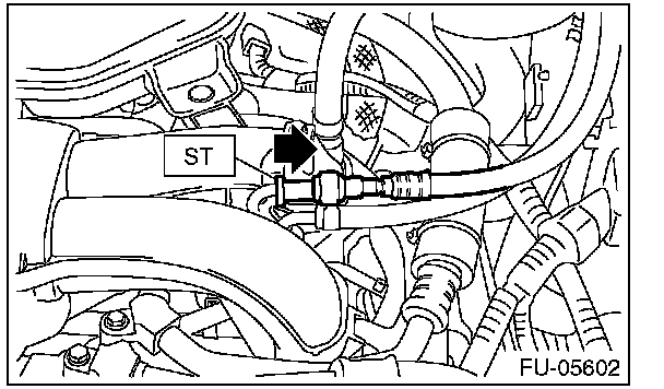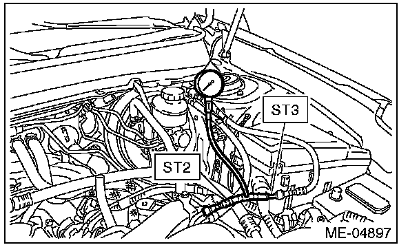 (2) Connect the fuel pressure gauge with ST2 and ST3.