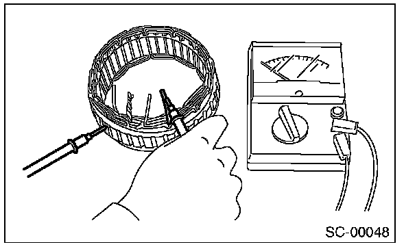 3. Using a circuit tester, check the resistance between slip rings. If resistance exceeds the standard, replace the rotor.
