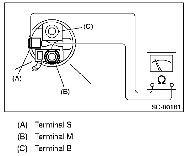 Using a circuit tester (set to "ohm"), check that there is continuity between terminals S and M, and between terminal S and ground.
