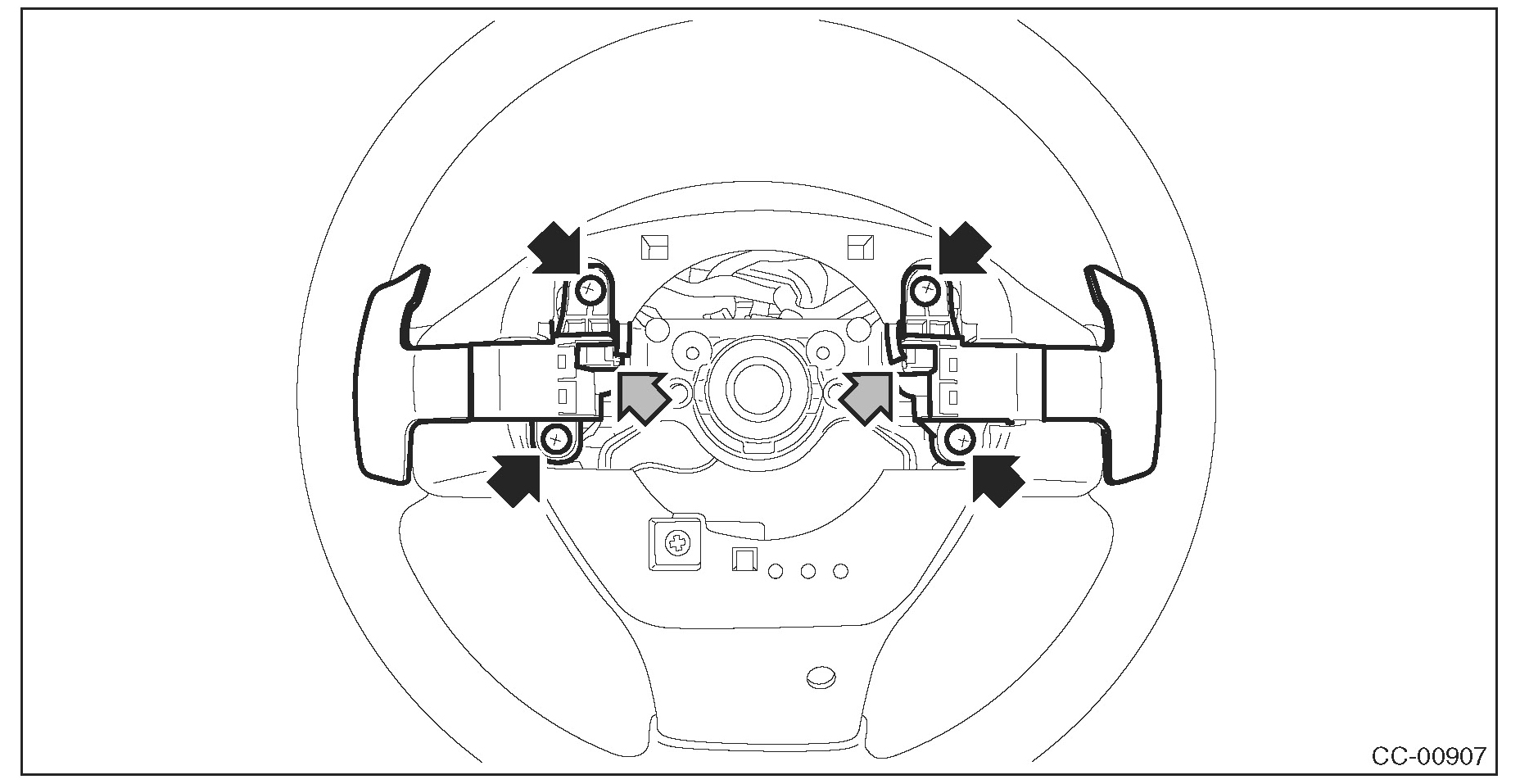 1) Remove the screw, disconnect the connector and remove the paddle shift switch. (Model with paddle shift)
