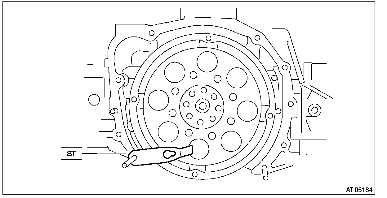 (3) While checking the tightening angle with the ST, tighten the drive plate mounting bolts to the specified angle.