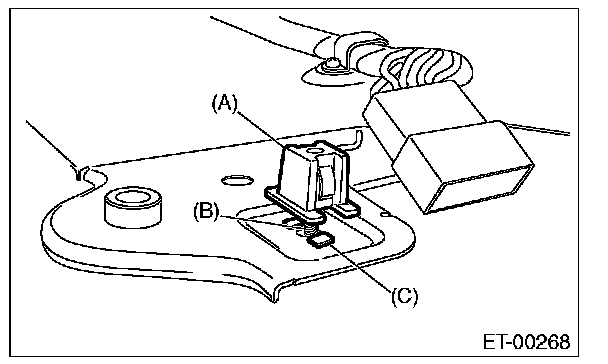 1. Align a temporary clip (A) to the protrusion (C) using a temporary screw (B), and attach to the rear entertainment system body.