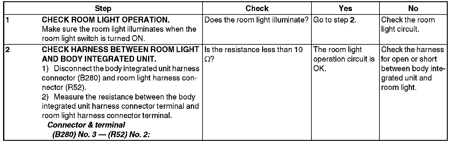 Check Room Light Operation