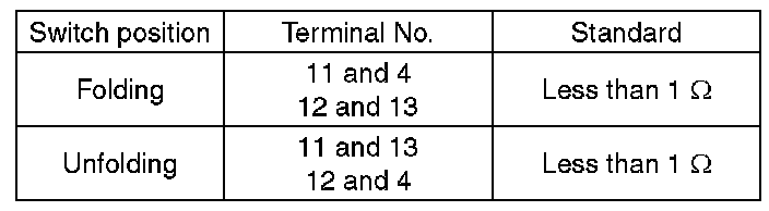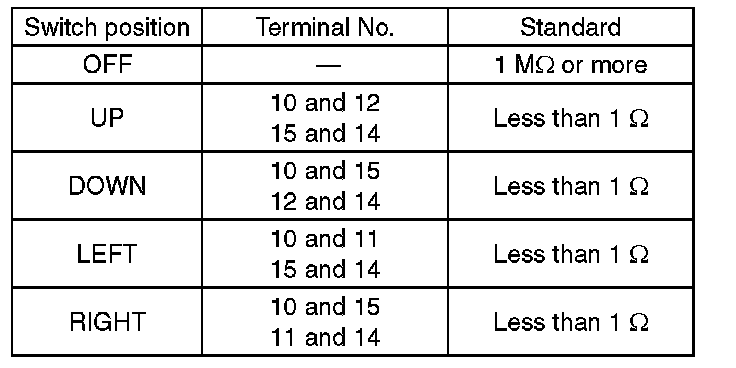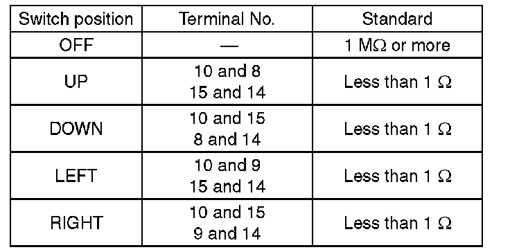 Move the remote control mirror switch to each position and check continuity between terminals.
