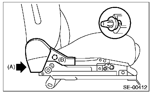 6. Remove the screw (A) and clip (B), and then remove the seat side cover inside.