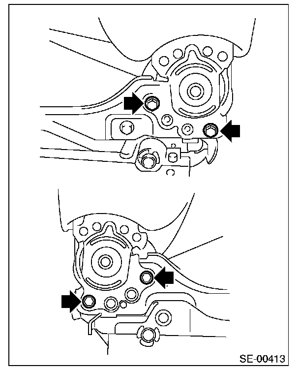 4. Temporarily tighten the reclining hinge bolts in the order of (1) through (4) to an extent that the seat backrest assembly is not held securely.