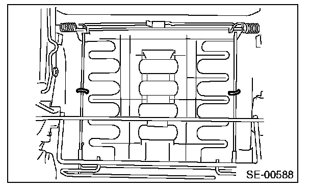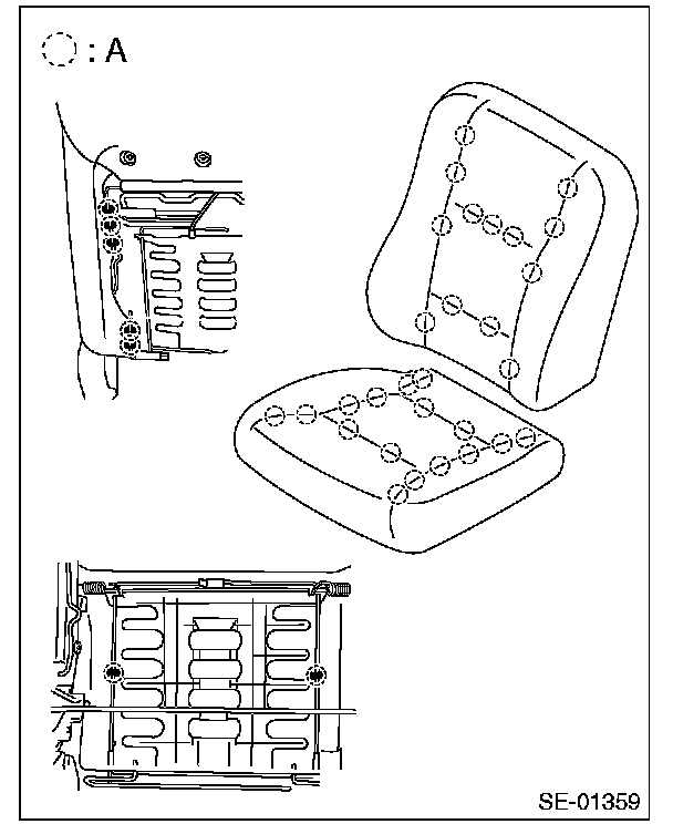 - If the seat cushion cover is removed or replaced, make sure to perform occupant detection system adjustment after installing the seat. [Ref. to SYSTEM CALIBRATION (REZEROING), OPERATION, Subaru Select Monitor.] Failure to do so may prevent the passenger's airbag from operating properly.
