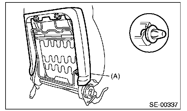 17. Remove the hog rings (A) on the surface side of backrest, and then remove the backrest cover from backrest.
