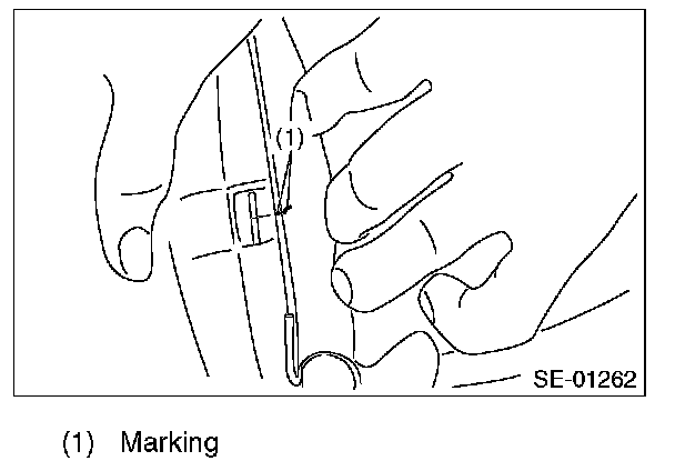 1. Adjust so that the left and right clearances between wire and seat pad become equal, and mark the seat pad.