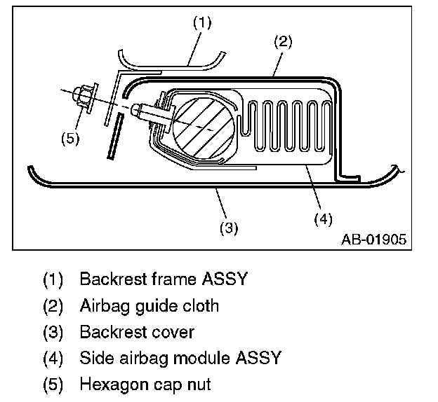 - When installing the side airbag module assembly, be sure to put the side airbag module between backrest cover and airbag guide cloth.