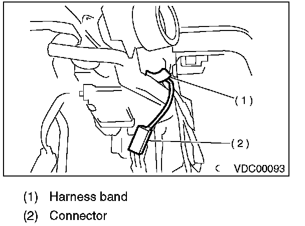 7) Unlock the harness band and disconnect the connector of the steering angle sensor.