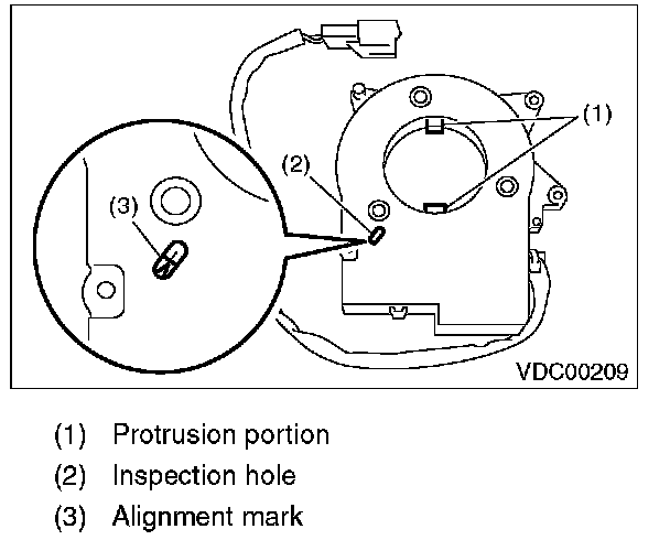 10) Turn the protrusion portion of new steering angle sensor to match the alignment mark of inspection hole.