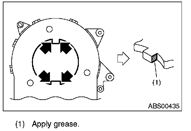 12) Apply a thin coat of grease that is supplied with the new part, to the 4 protruding sections of the steering angle sensor.