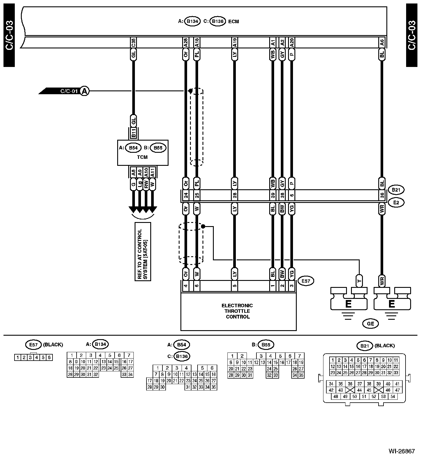 The locations of the Connectors or Grounds shown within these diagrams can be found via the connector or ground number at Vehicle Locations.