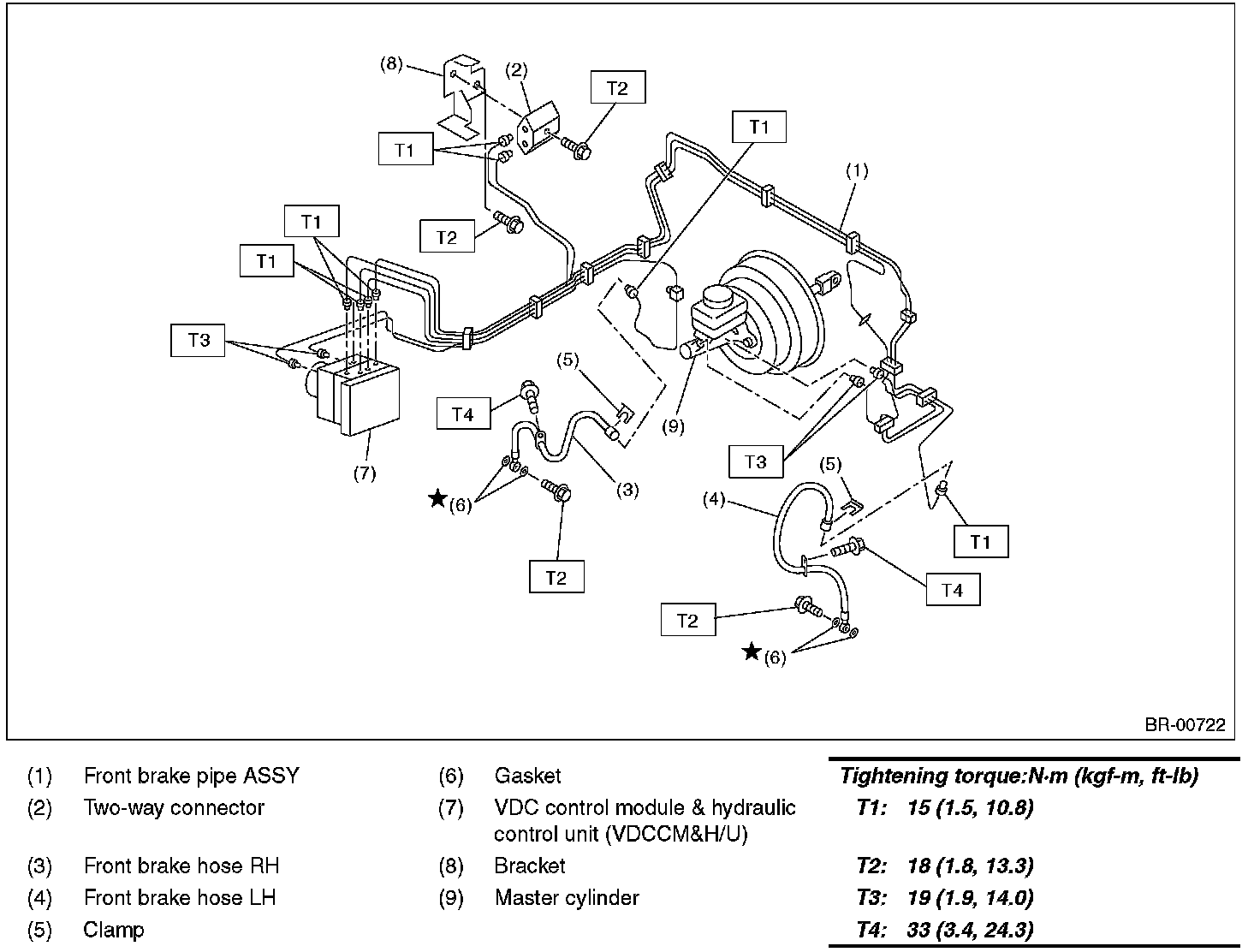 CENTER AND REAR BRAKE PIPES AND HOSES