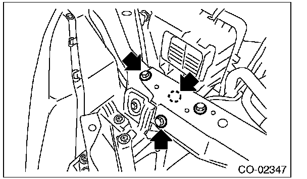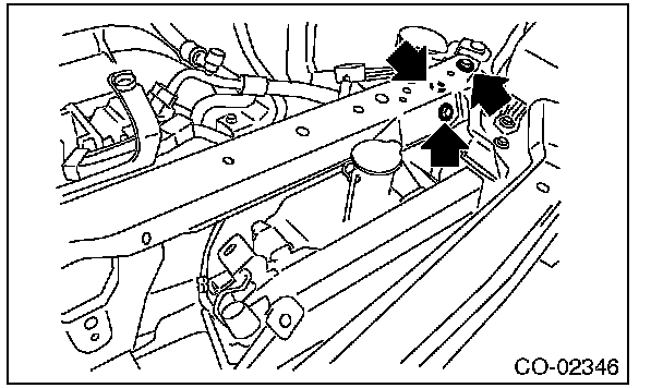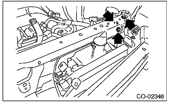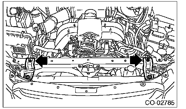 (5) Remove the bolts on the right side of the radiator stay.