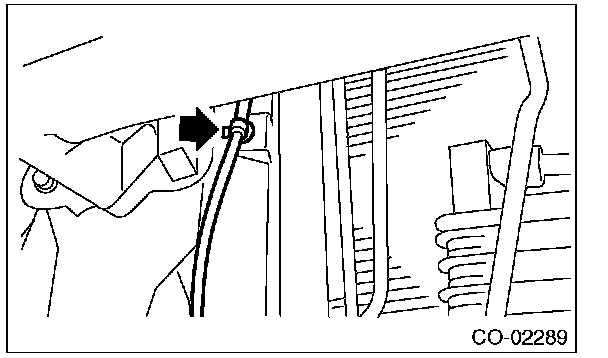 (3) Remove the front hood cable fixing clip from the radiator stay.