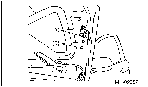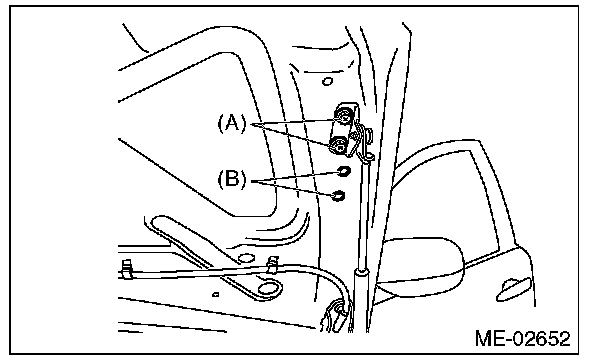 6) Change the bolt mounting position from (A) to (B), then completely open the front hood.