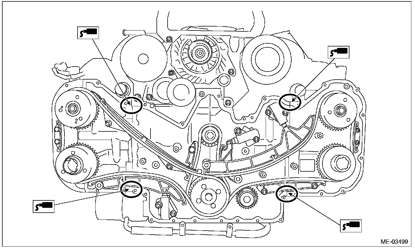 15) Make sure there is no oil leaks in the chain cover mating surface.