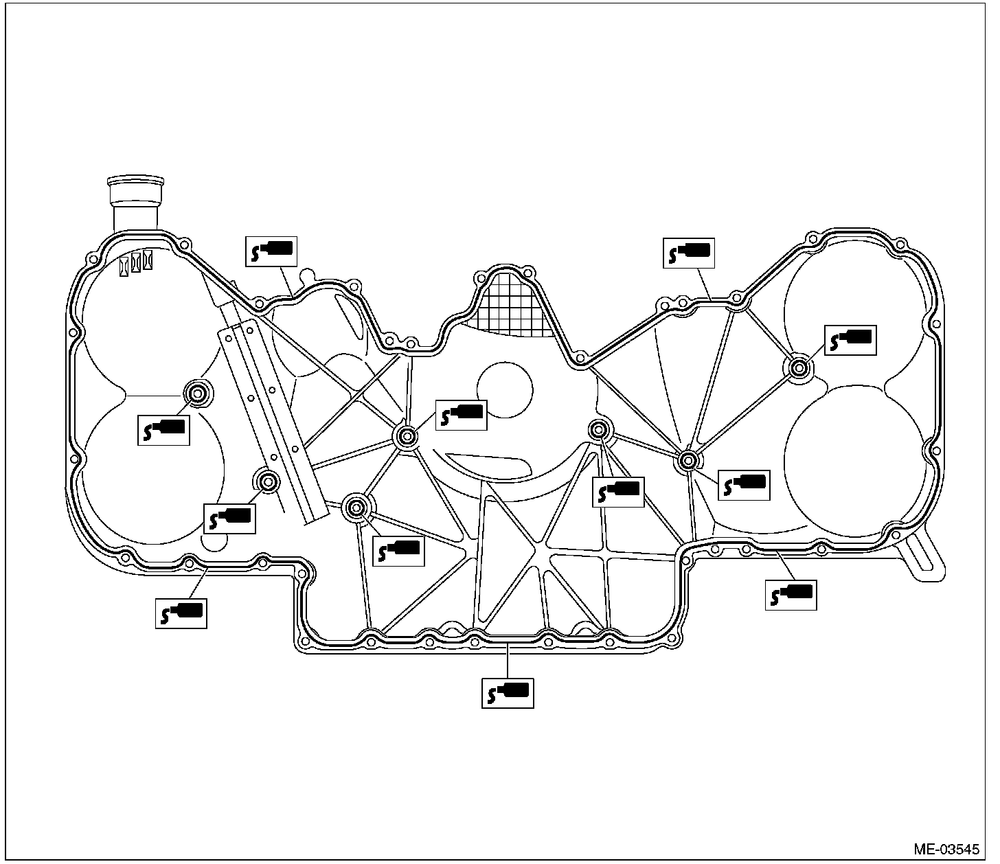 Install within 5 min. after applying liquid gasket.