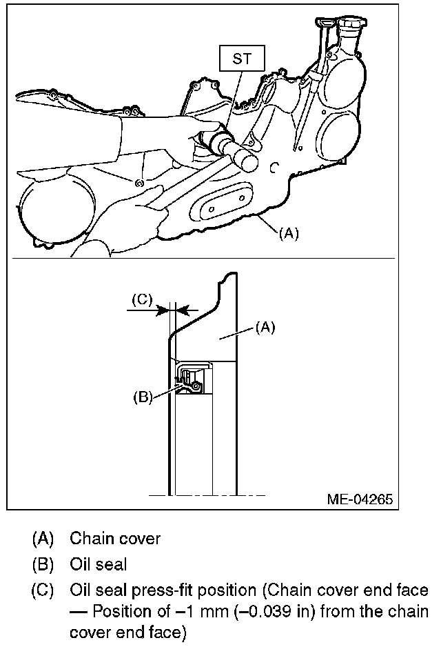 Chain cover end face - Position of -1 mm (-0.039 in) from the chain cover end face
