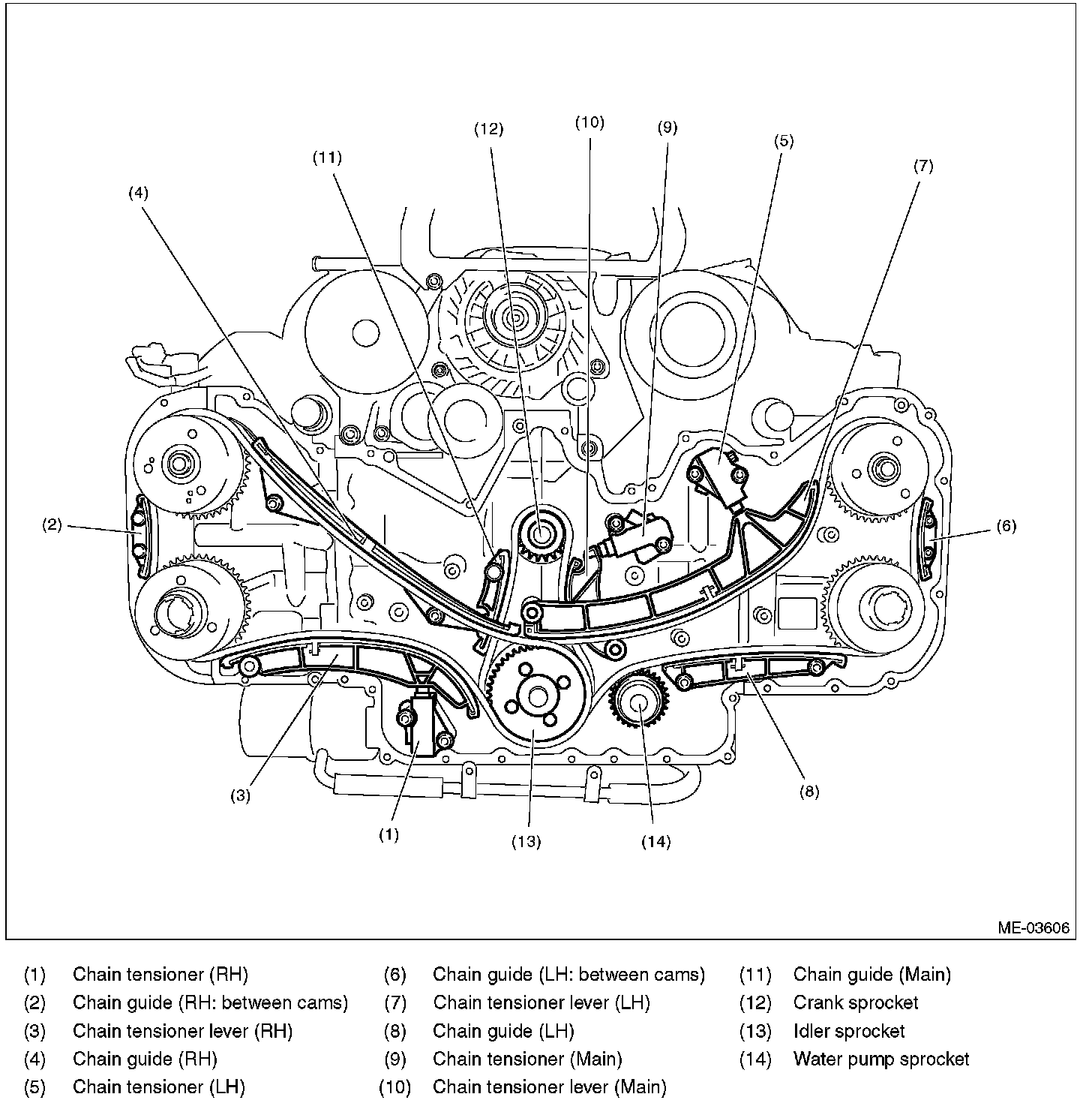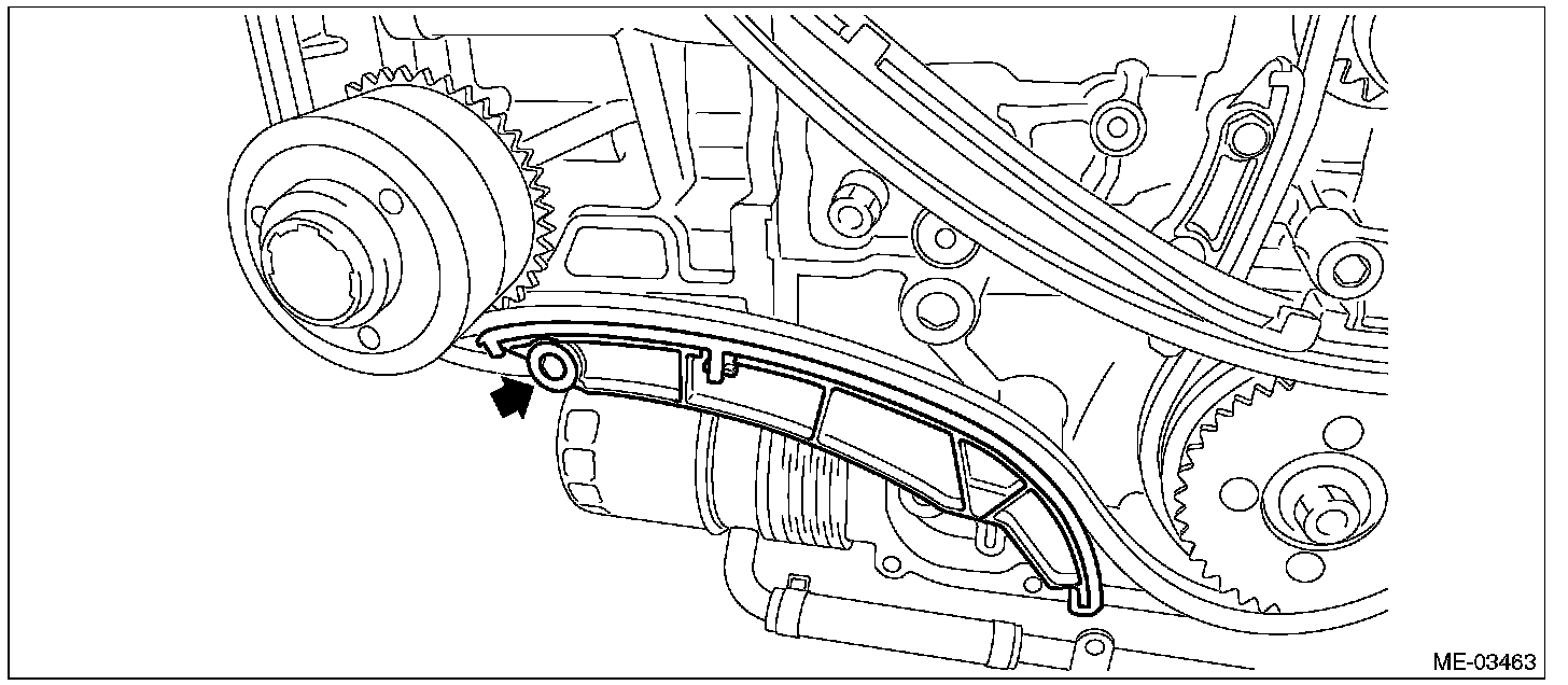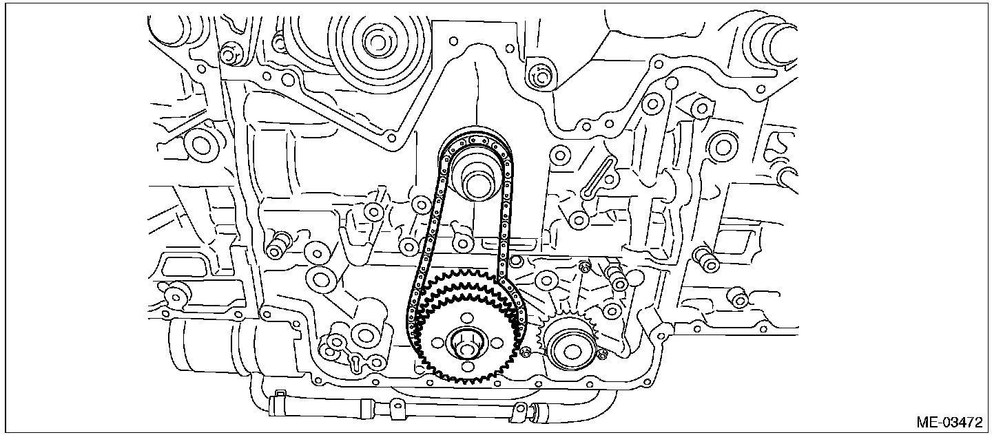 20) Remove the idler sprocket, and then remove the idler sprocket and timing chain (main).