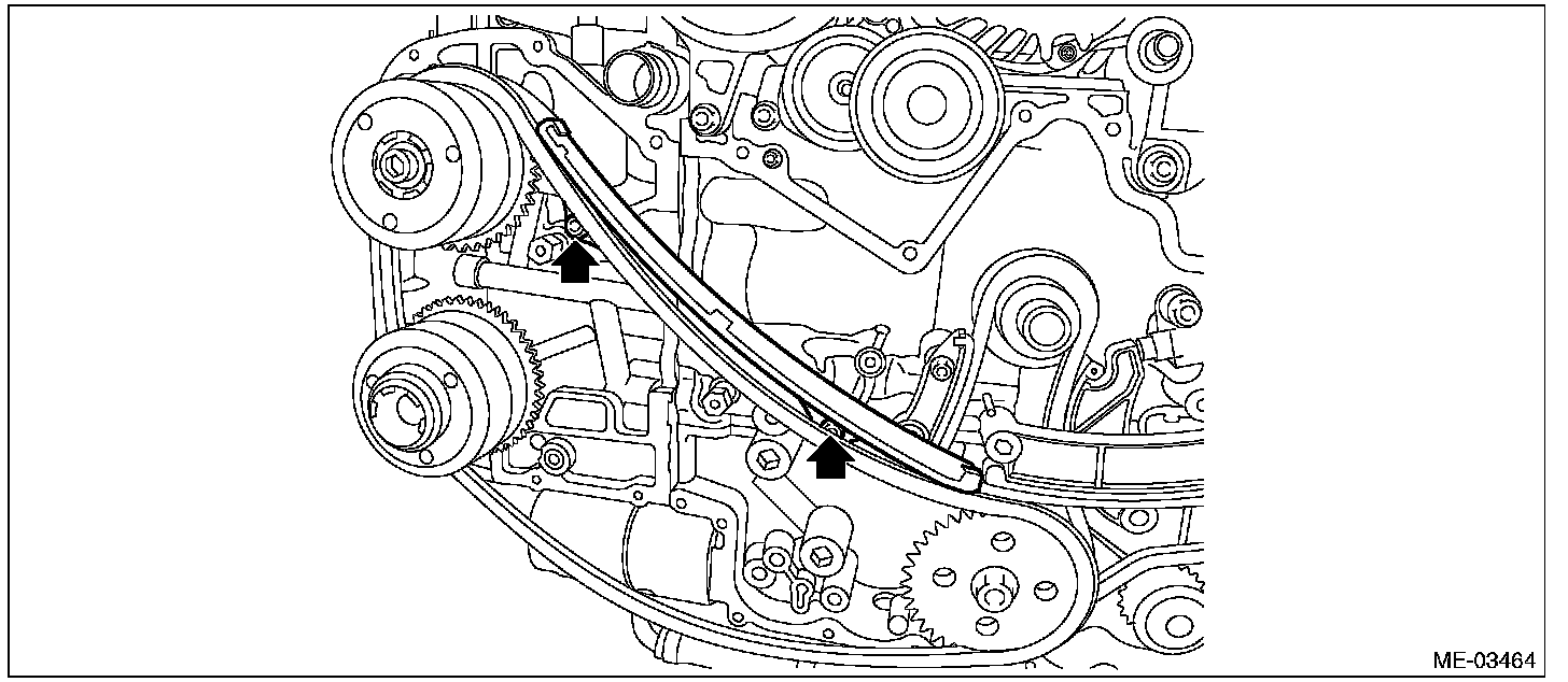 (1) Make sure that the timing mark of idler sprocket is aligned to three timing chain marks (gold).