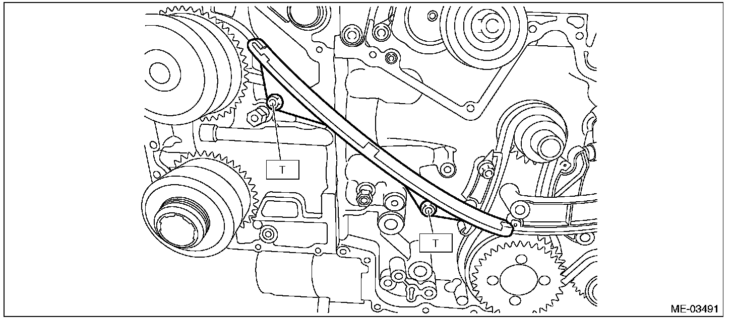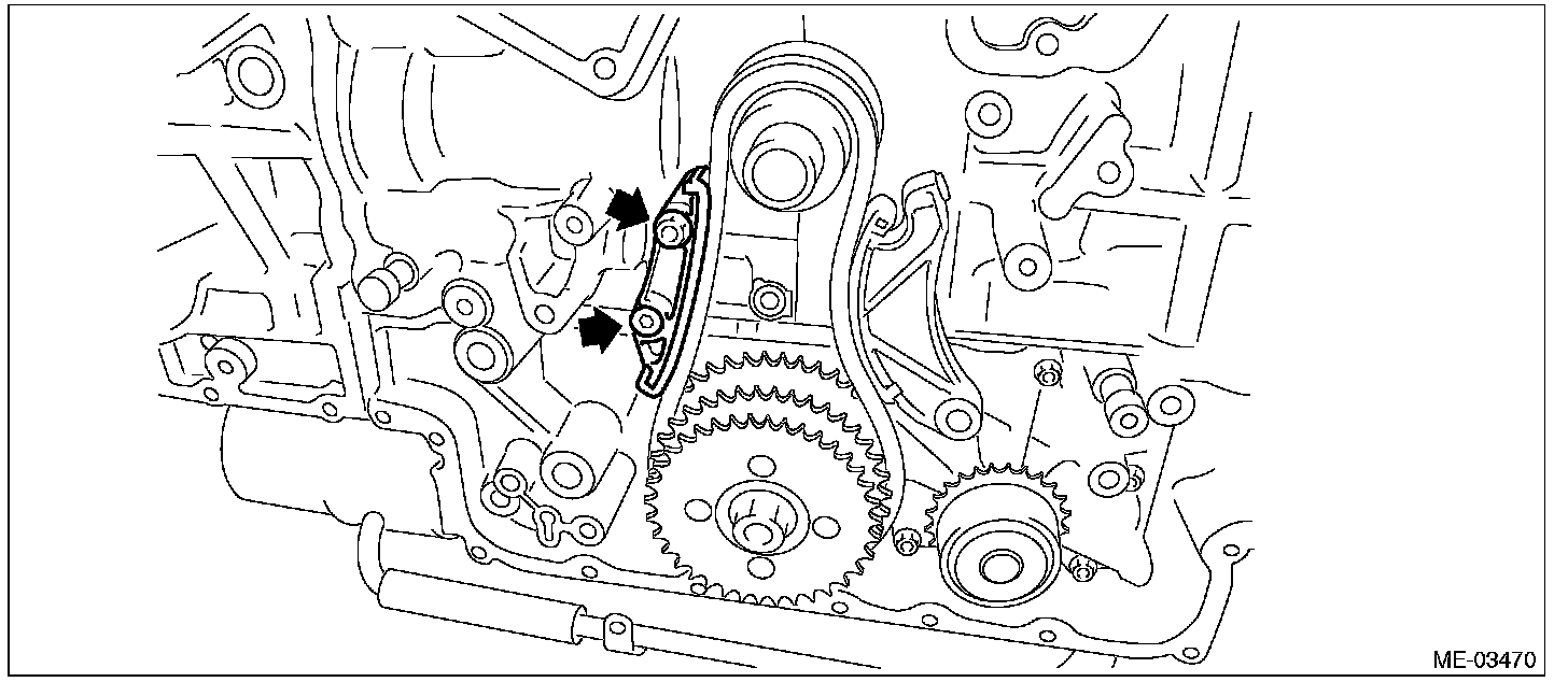 To avoid mixing the timing chain component parts, separate each part after their removal.