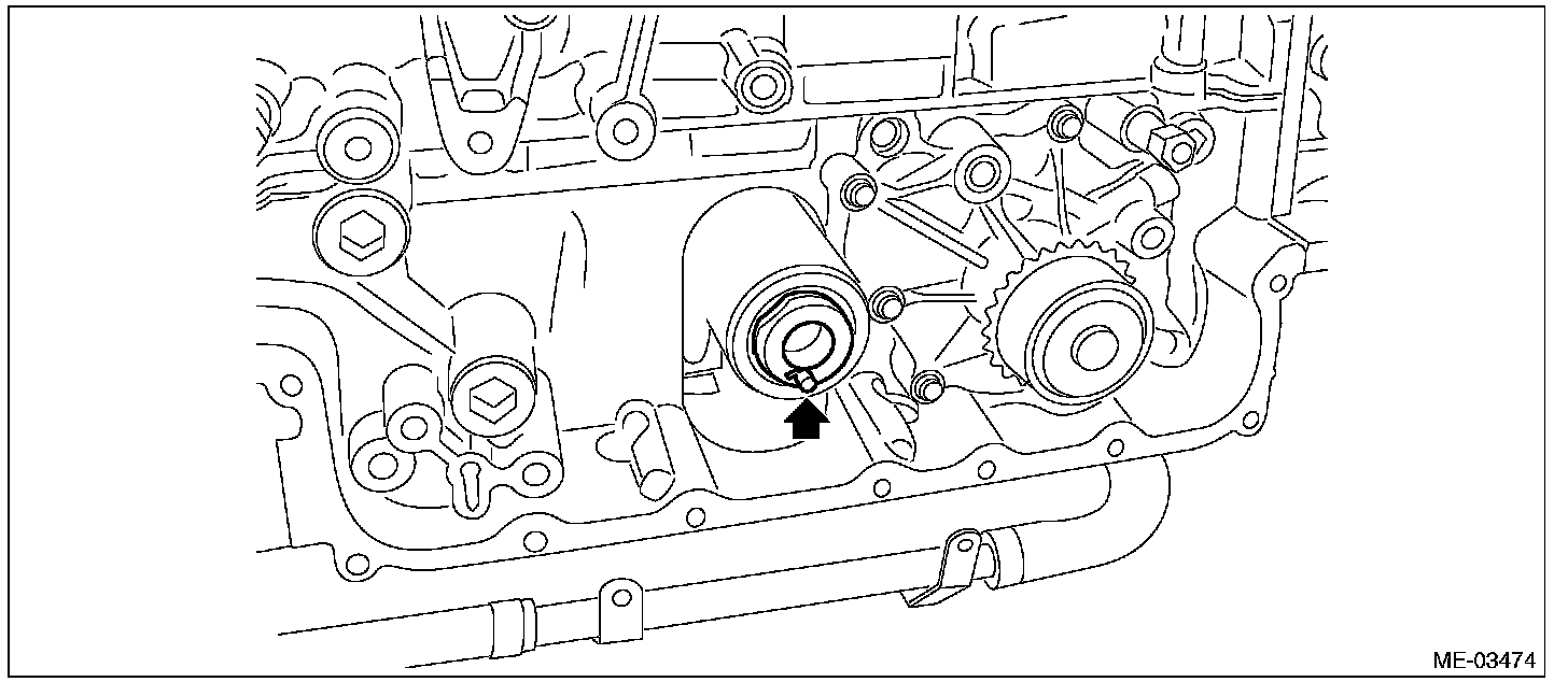 (3) Insert the stopper pin into the hole on the chain tensioner body.