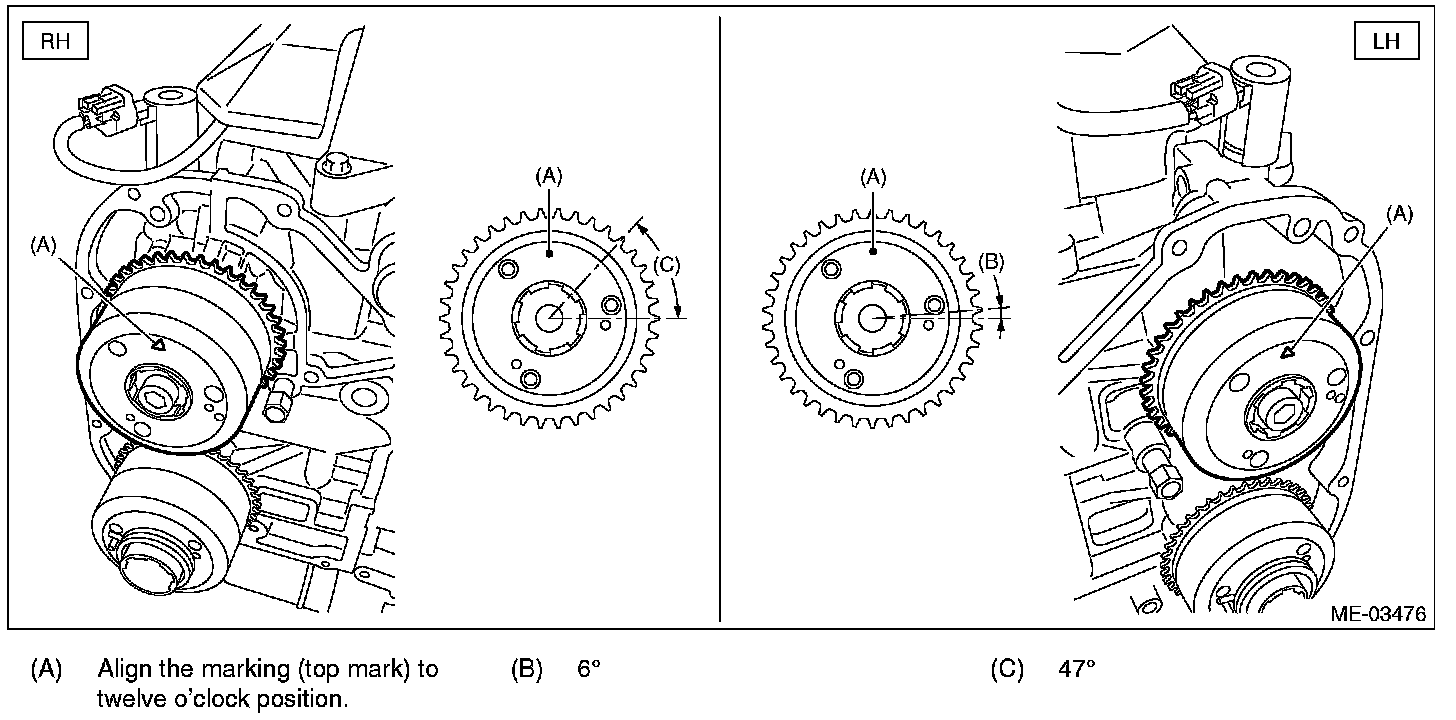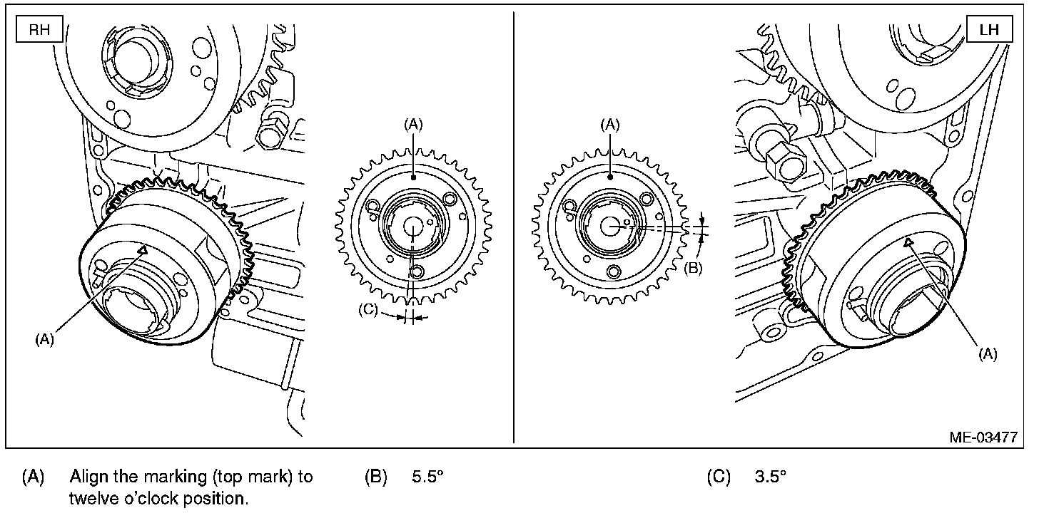 4) Align the intake cam sprocket to twelve o'clock position as shown in the figure.