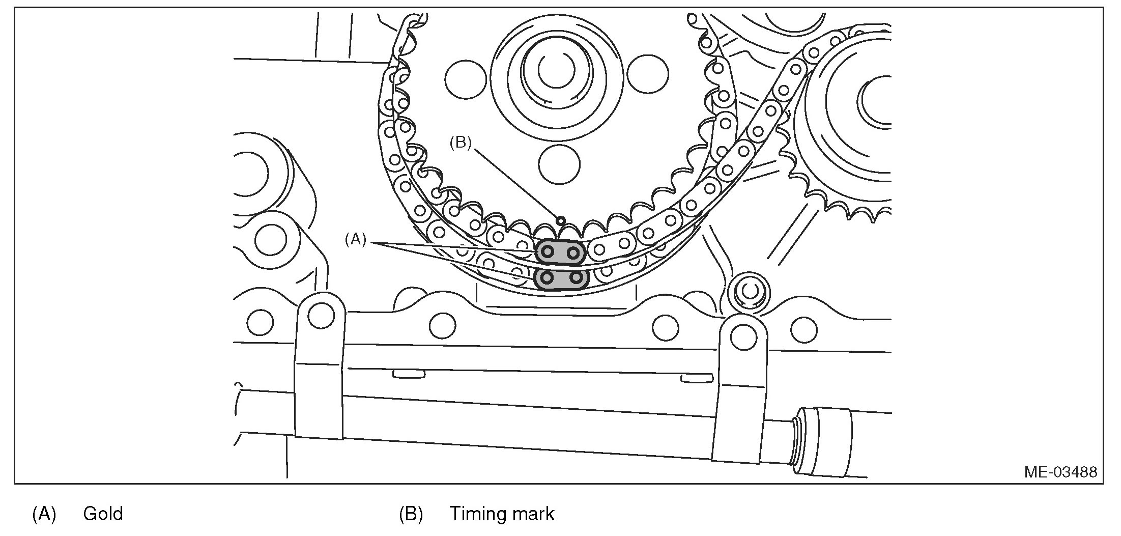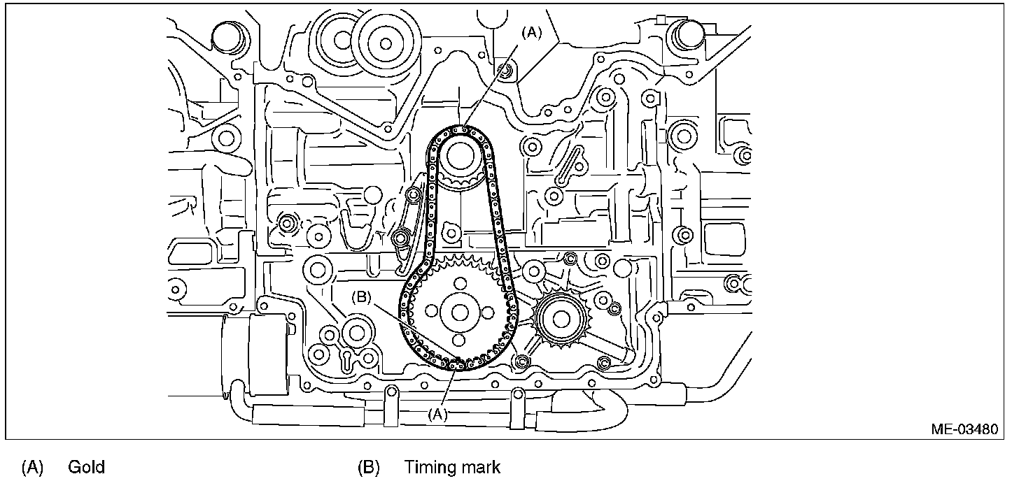 (1) Match the timing chain mark (gold) to the timing mark position of the idler sprocket.