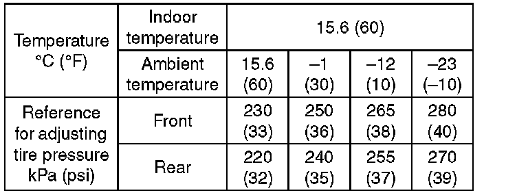^ When adjusting tire pressure indoors in winter, there is a big temperature difference between the indoor facilities and outside. Once the car is outside where the temperature is lower, the tire pressure will drop, causing the tire pressure warning light to come on, even if the tire pressure was adjusted to standard values indoors. To avoid this, it is necessary to adjust the tire pressure to the high side in consideration of the difference in temperature between inside and outside.