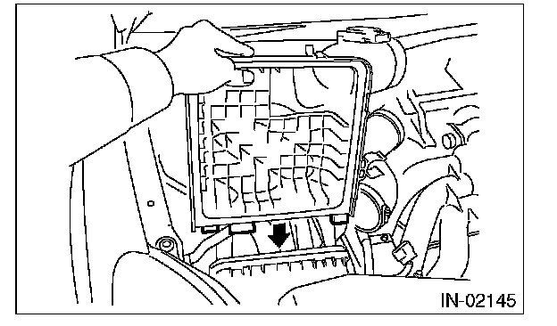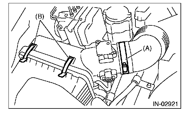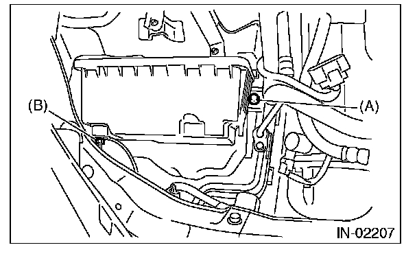 5. Remove the clips (B) securing the upper side of the air cleaner case.
