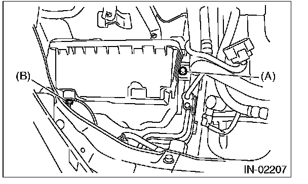 8. Remove the bolts (A) and nut (B) which secure the air cleaner case to body.