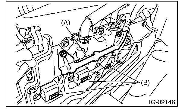 4. Disconnect the connector (B) from ignition coil.