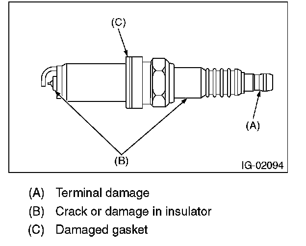 2. Check the spark plug electrode and condition of the insulator. If abnormal, check and repair the cause and replace the spark plug.