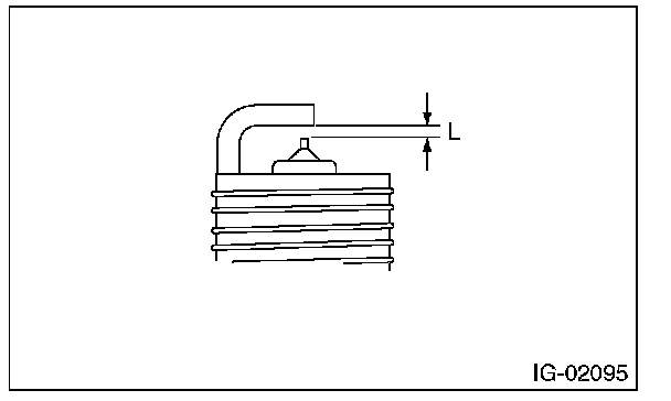 3. Using a nylon brush, etc., clean and remove the carbon or oxide deposits from the spark plug. If deposits are too stubborn, replace the spark plugs. After cleaning the spark plugs, check the spark plug gap "L" using a gap gauge. If it is not within the standard, replace the spark plug.