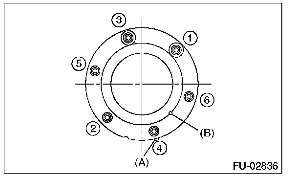 - Tighten the nuts and bolts to the specified torque in the order as shown in the figure.